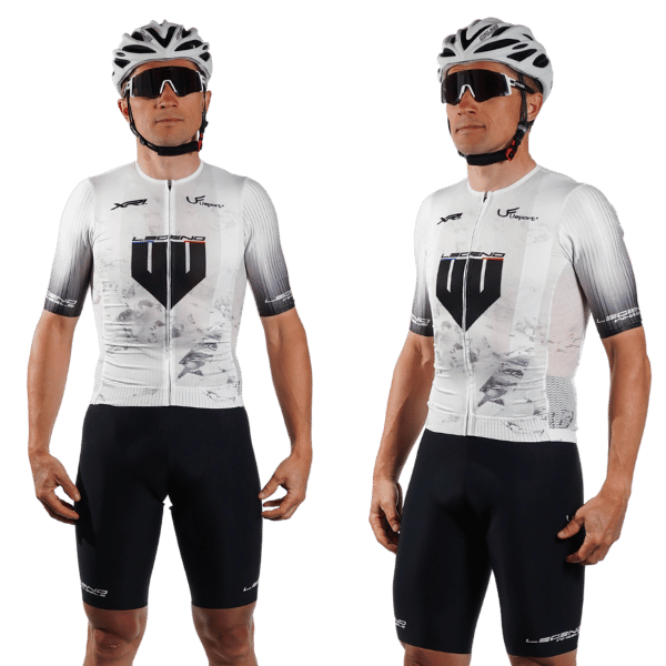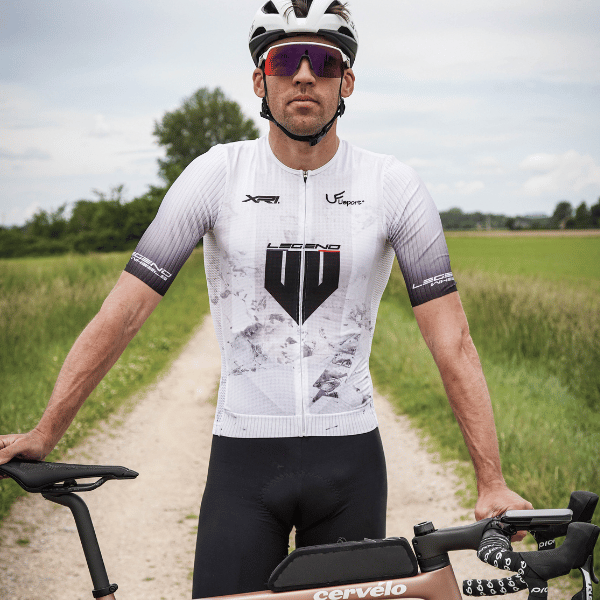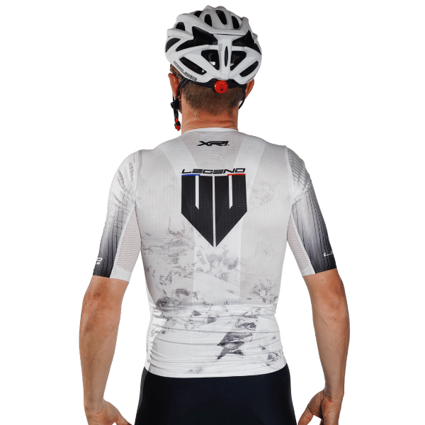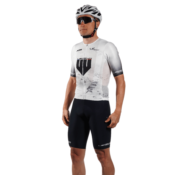 Conçu pour la performance pure, ce maillot de vélo blanc aéro à coupe racing épouse parfaitement le corps pour une pénétration dans l’air optimisée. Léger, respirant et ultra-ajusté, il est le choix des cyclistes en quête de vitesse et de confort en été.